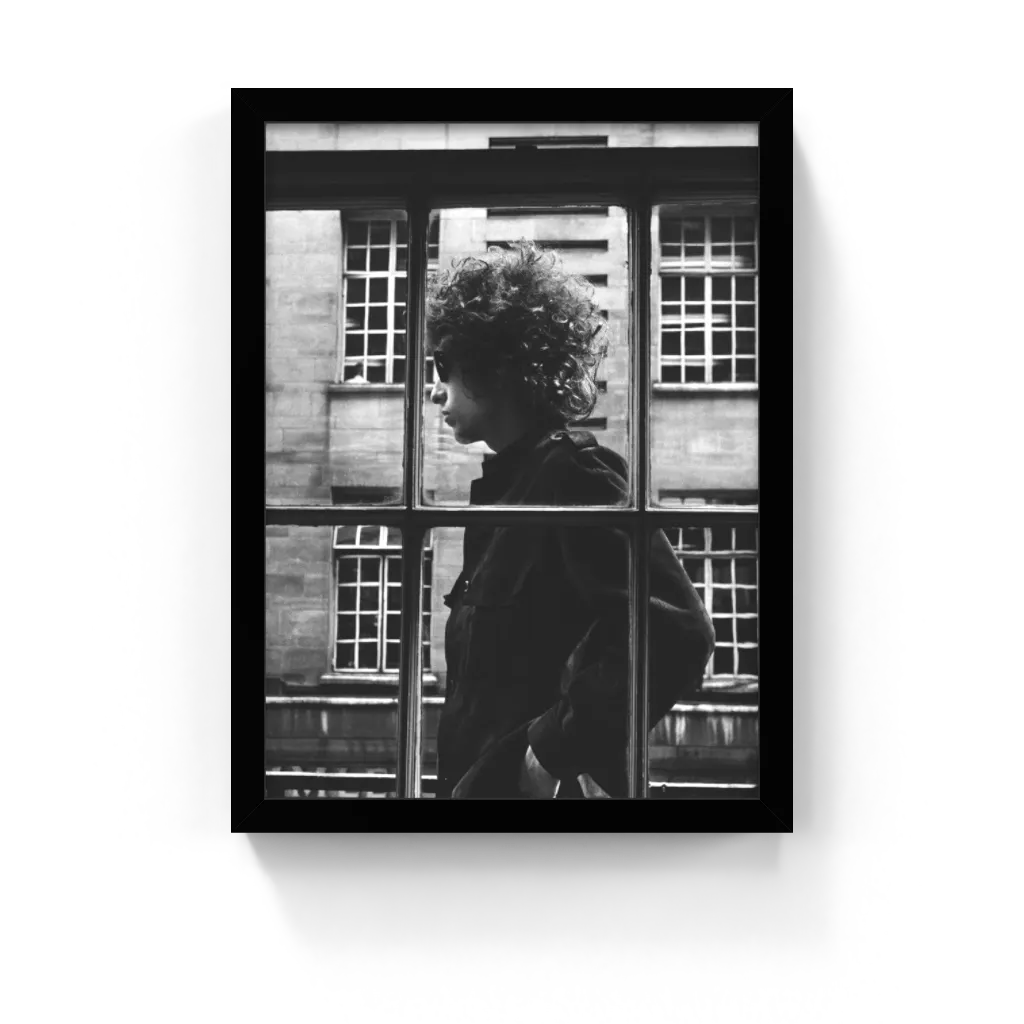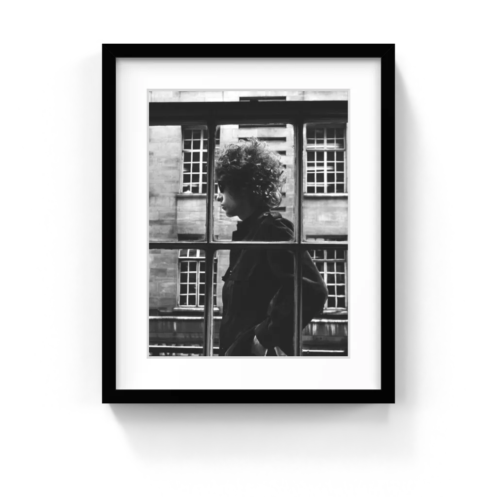 American Singer Bob Dylan Pictured Walking Past A Shop Window During His Visit To London Art Print