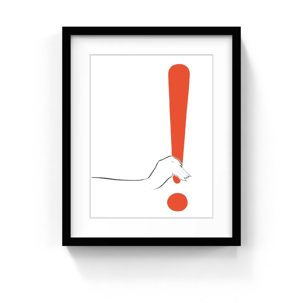Exclamation Point, Red and White Art, Retro Vintage Fashion Poster Art Print