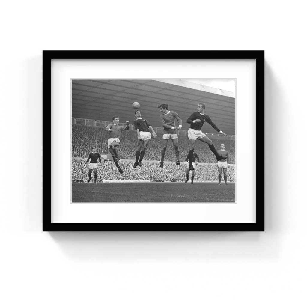 Pat Crerand, Frank Mclinktock, George Best And John Radford, Manchester United v Arsenal 1967 Art Print