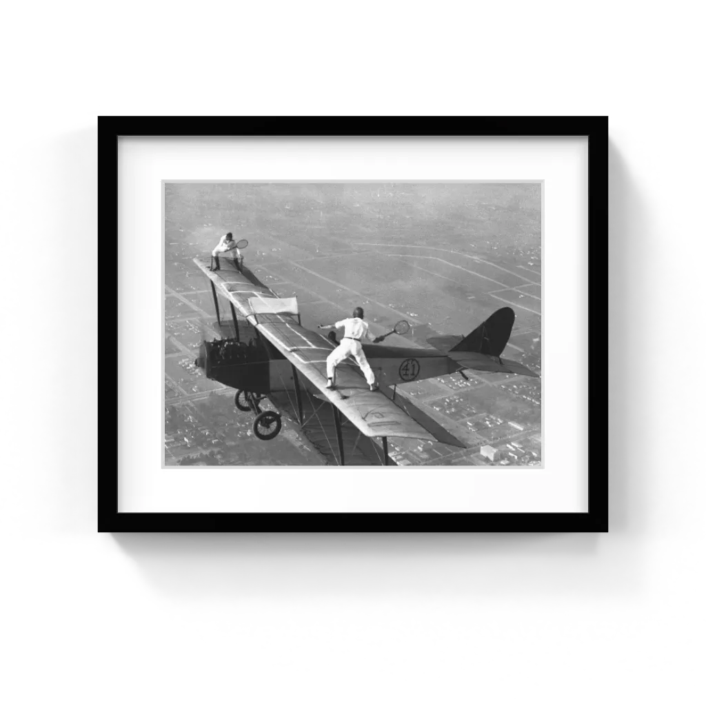 Tennis On An Airplane Vintage Black and White Photo Art Print